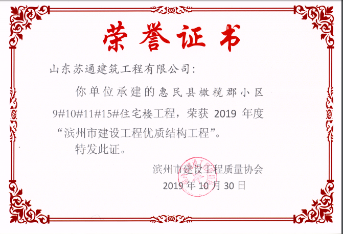 • 喜訊:我公司三位同志獲評濱州市建筑企業(yè)優(yōu)秀項目經(jīng)理稱號